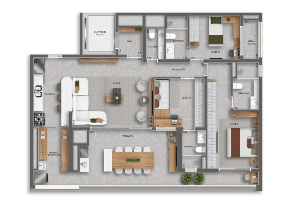 Apartamento 140m² · 2 Suítes · Opção Ampliada