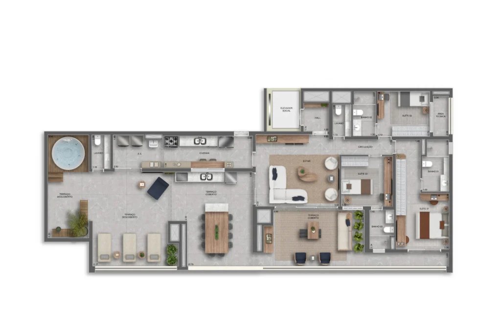 Com opções que vão de studios a penthouses de até 235 m², o projeto atende desde investidores até famílias que buscam espaço, conforto e experiências diferenciadas. Seu lazer é completo e planejado para o bem-estar, com destaque para a piscina com raia de 25 metros, fitness de 243 m² e quadra de beach tennis.